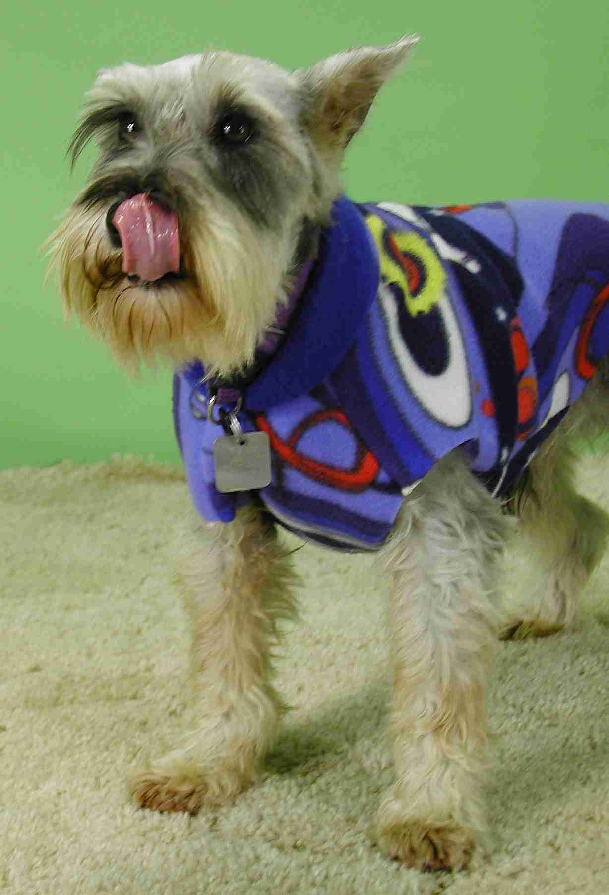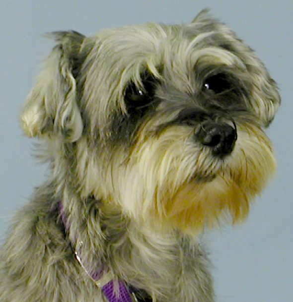 Teddie is a 5 year old miniature schnauzer who came to us from a puppy mill. She's not feeling great right now, as she was just spayed and lost some teeth in a dental cleaning. But, she's a very sweet girl, with a wiggly little tail. Teddie is crate trained, and housebroken if kept on a schedule. She's great with other dogs - cats are unknown. (Nick's her buddy!) She'll be healed and looking for a new home soon!!