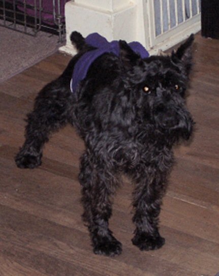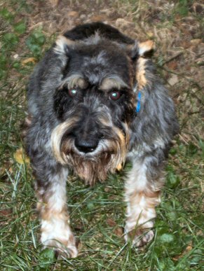 This little girl is sweetness on 4 legs! She's a 7 year old miniature schnauzer, also rescued from a puppy mill. She was spayed and had a hernia repaired - same day as Dotti! Mandy is a darling 'lil girl - VERY affectionate with people. Her 'lil tail wiggles every time someone pays attention to her, and she LOVES to be petted. She's not yet housebroken - that's going to be a challenge, as she seems to have some difficulty "getting" it.