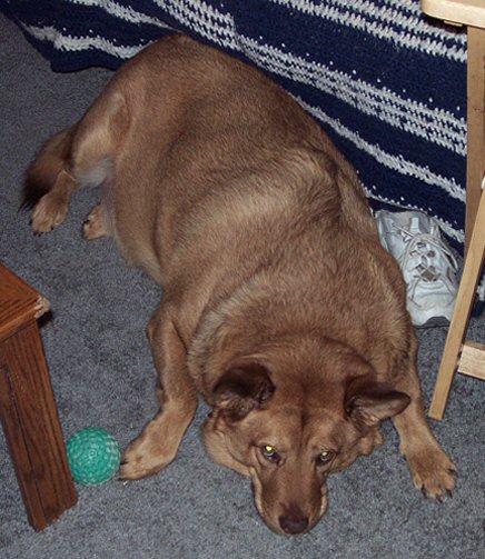 Chip is a ~3 year old German Shepard/Chesapeke Bay Retriever mix. He was originally adopted from APB as a pup, and was had extensive surgery on one of his rear legs. His previous "owners" slammed his leg in a door, and didn't have it treated. Sadly, Chip had to be returned when his family's life took a turn for the worse. Chip is housebroken, crate trained, great with other dogs and cats, and loves kids of all ages! But, no one is completely perfect, right? Chip is overweight, and is currently on a strict diet to shed some unwanted pounds. Given the past history with his leg, carrying extra poundage isn't good for him!