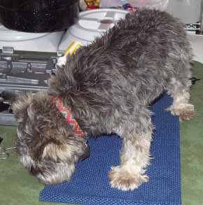 Jake is quite a change of pace for the Schnauzerama household. He's a 3 year old shih tzu, and he came from the same puppy mill in Indiana that Nick was rescued from. Grooming this 'lil guy was quite the challenge - one that spanned over 3 hours. Jake was a very good boy, though, even thru all the cutting and combing and trimming. He's not terribly fond of baths, though! Jake is crate trained, and mostly housebroken - he does well if kept on a schedule. He doesn't appear to prefer kids, and would do best in an adult household. Jake is fine with other dogs, but doesn't play with them - we don't know about cats.