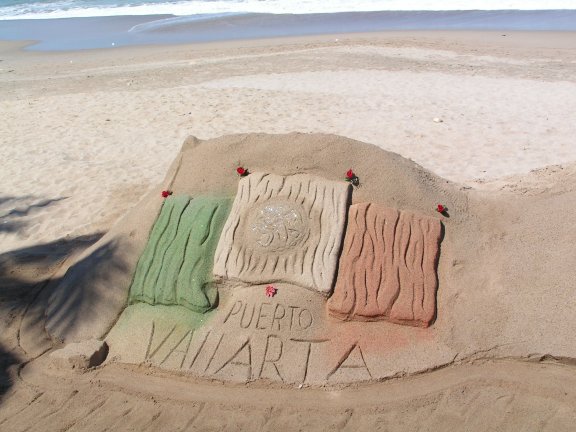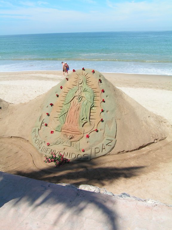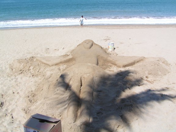 Sand sculptures on the beach...............